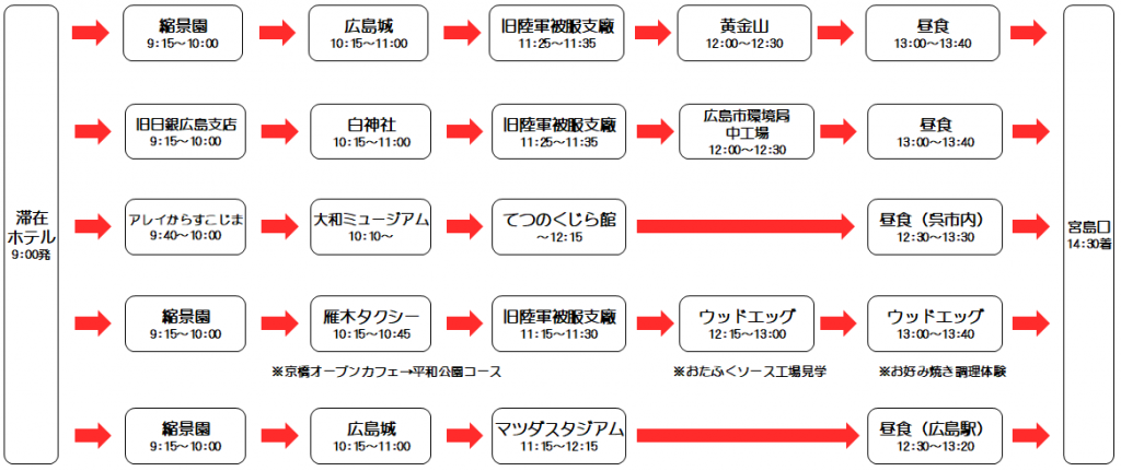モデルコース(例)広島市内出発~宮島口まで